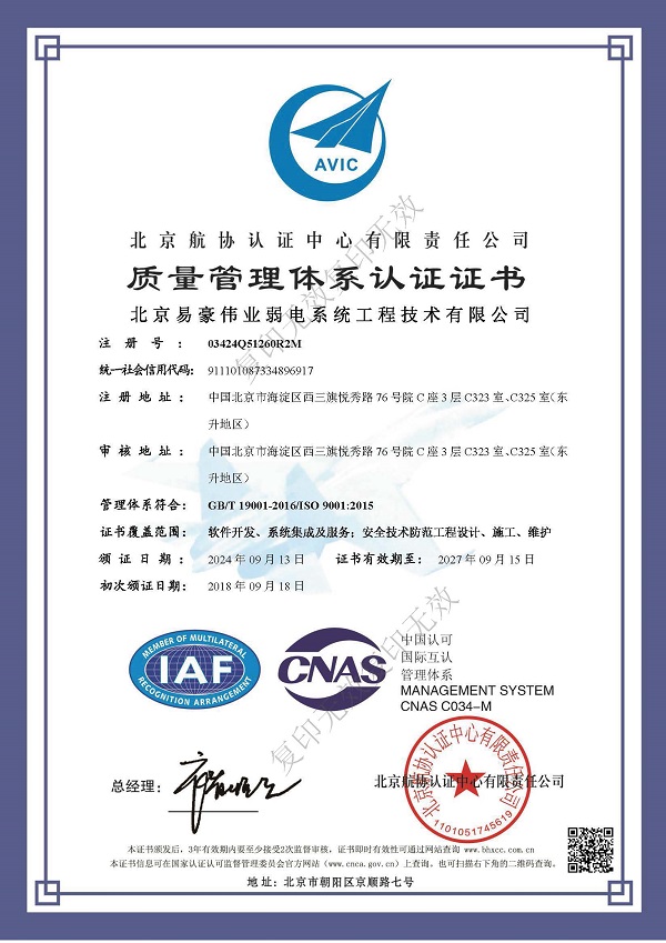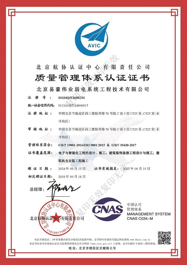 質(zhì)量管理體系認(rèn)證證書(shū)