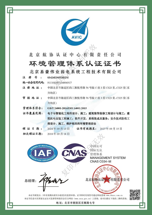 環(huán)境管理體系認(rèn)證證書(shū)