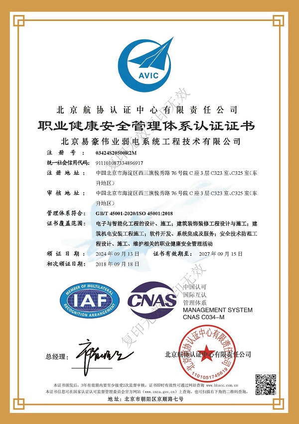 職業(yè)健康安全管理體系認(rèn)證證書(shū)
