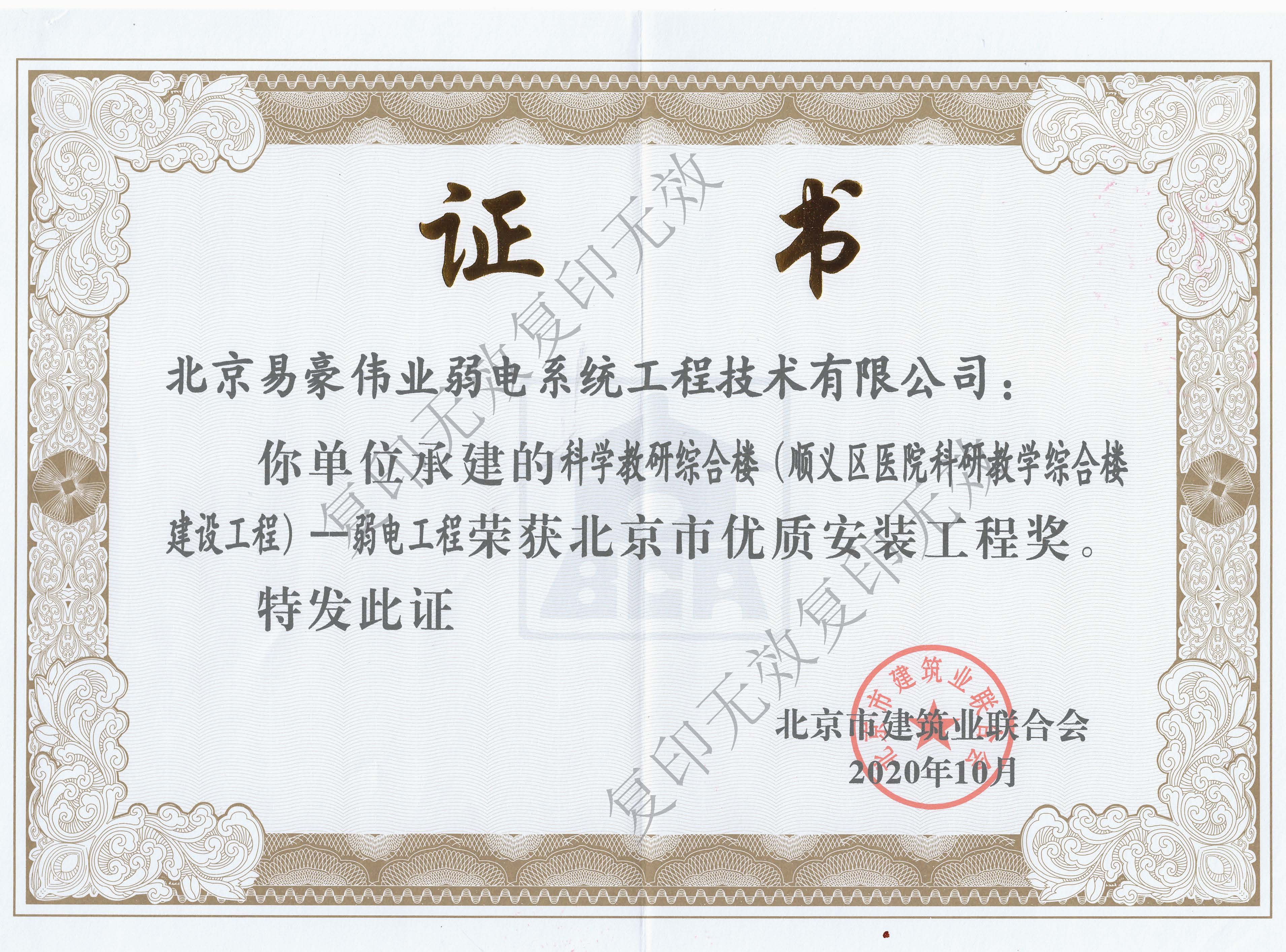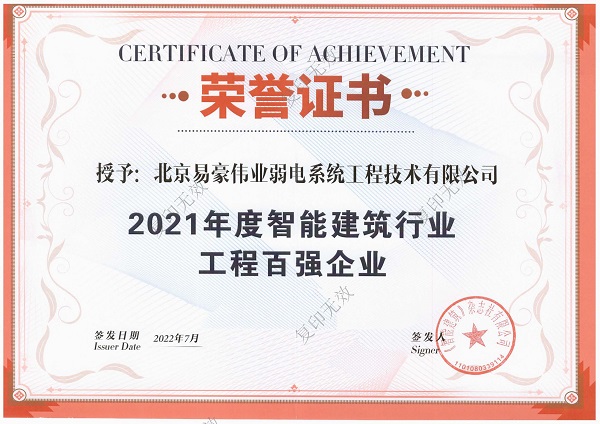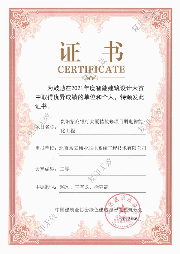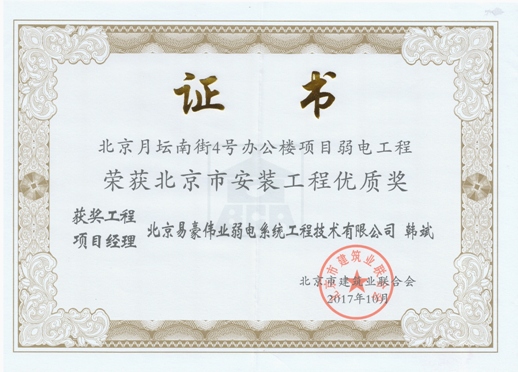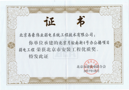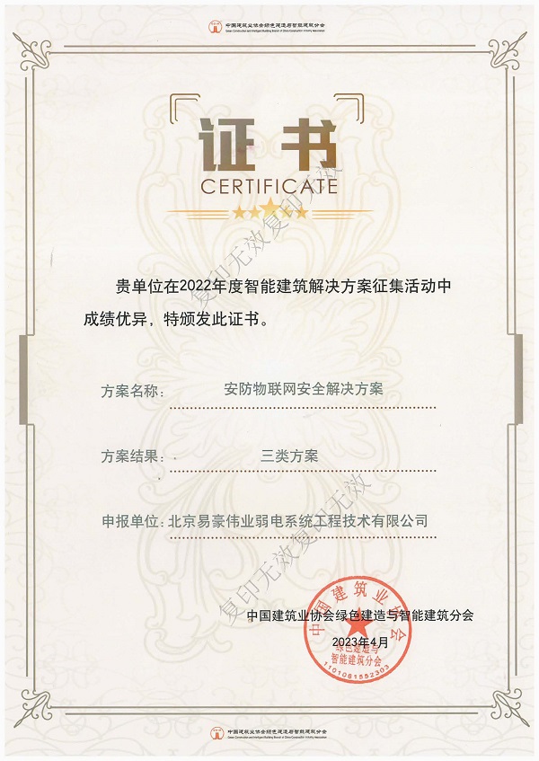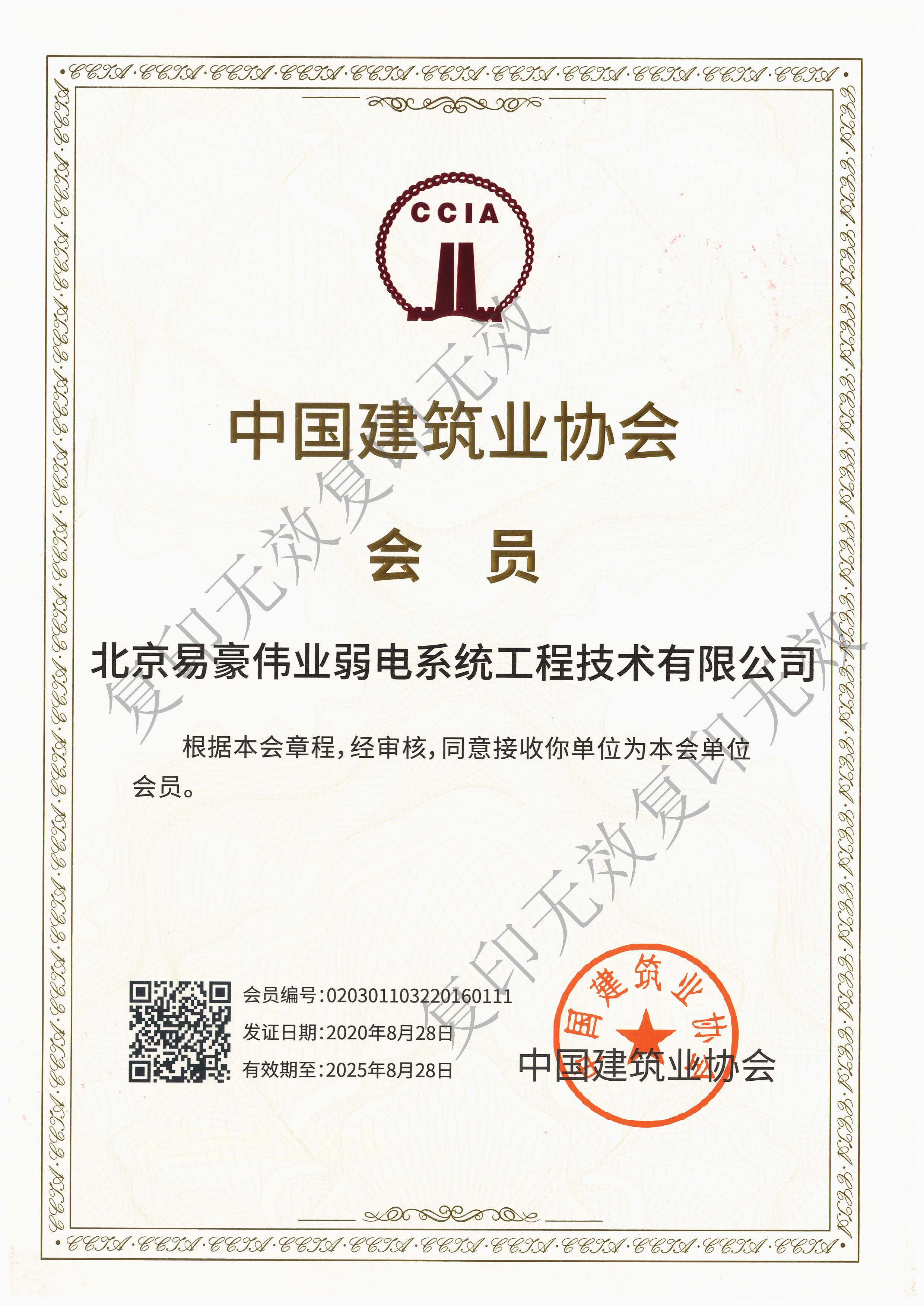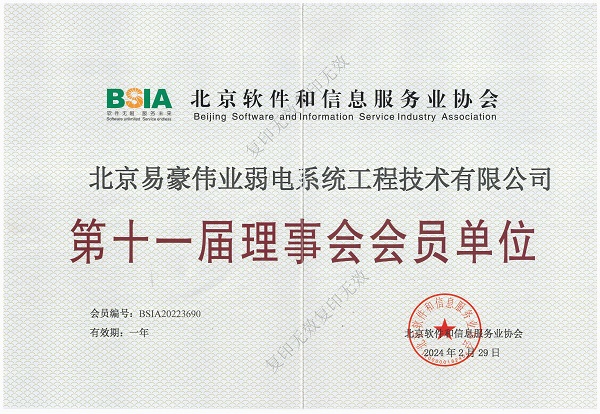北京市智能建筑協(xié)會常務(wù)理事單位證書