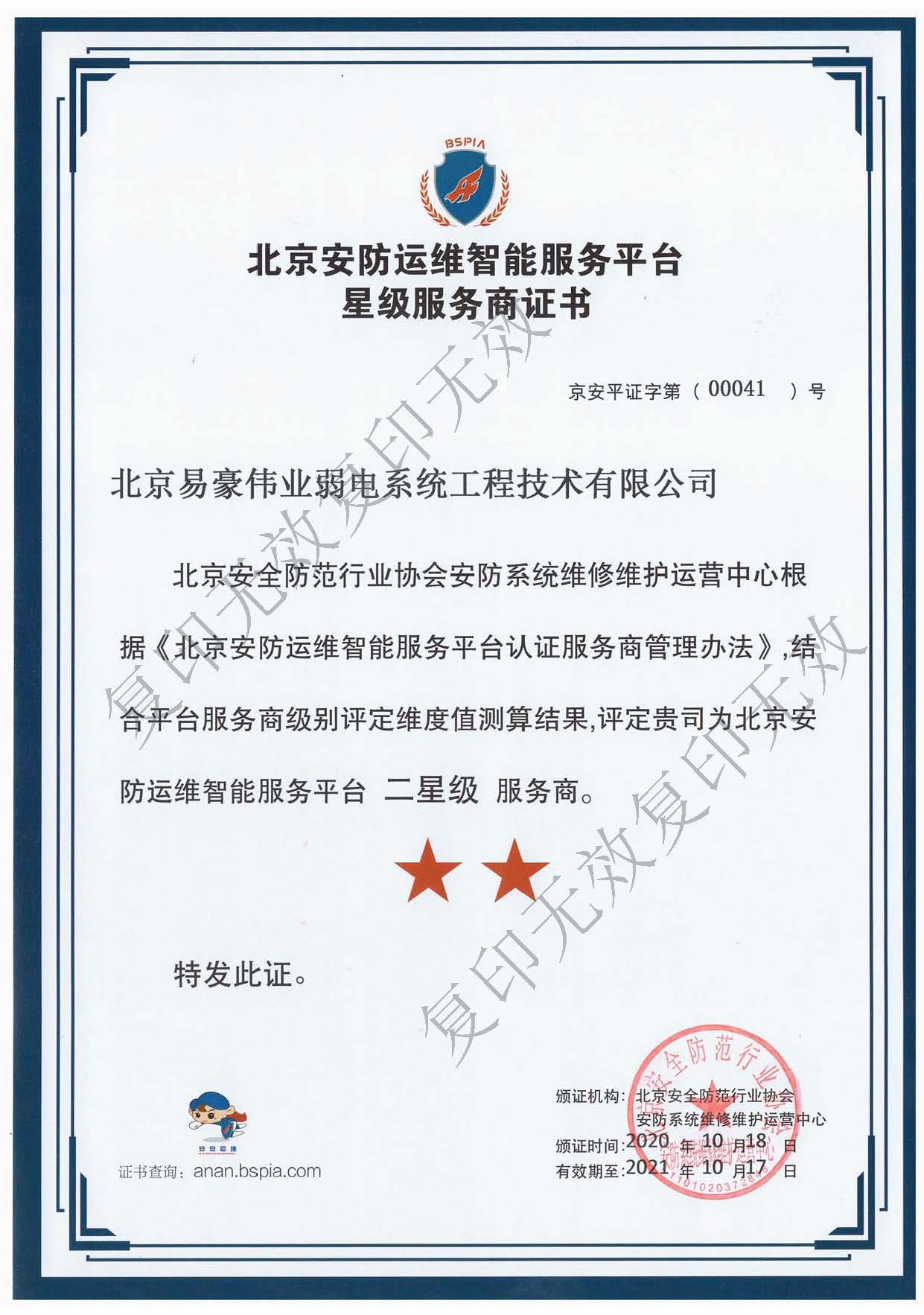 北京安防運維智能服務(wù)平臺二星級服務(wù)商