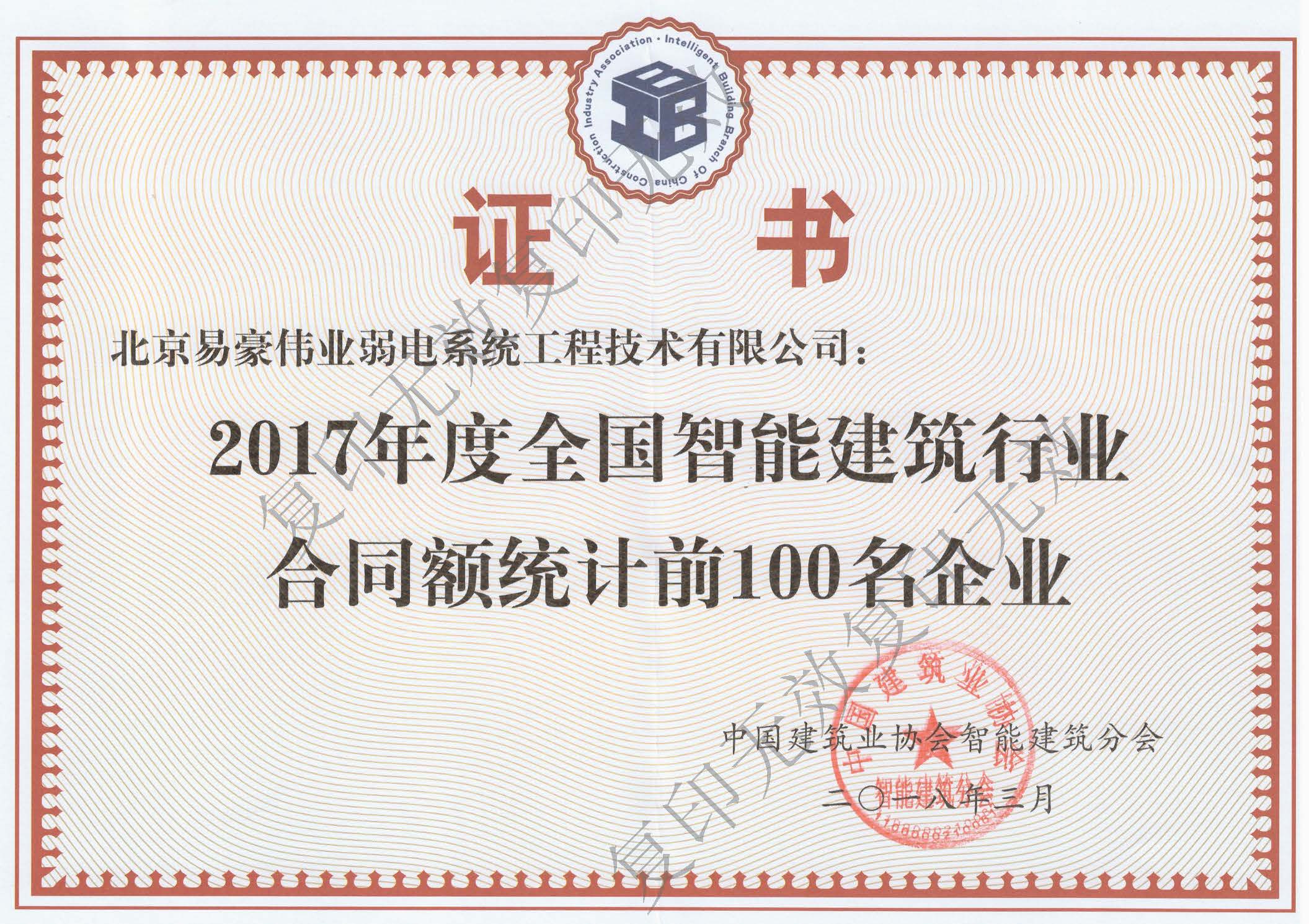 全國智能建筑行業(yè)合同額統(tǒng)計前100名企業(yè)