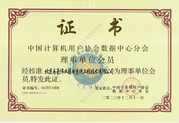 中國計算機用戶協(xié)會數(shù)據(jù)中心分會理事單位證書