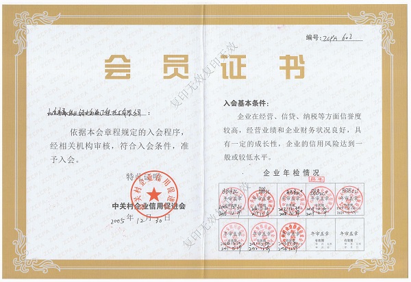 北京軟件和信息服務(wù)業(yè)協(xié)會會員證書