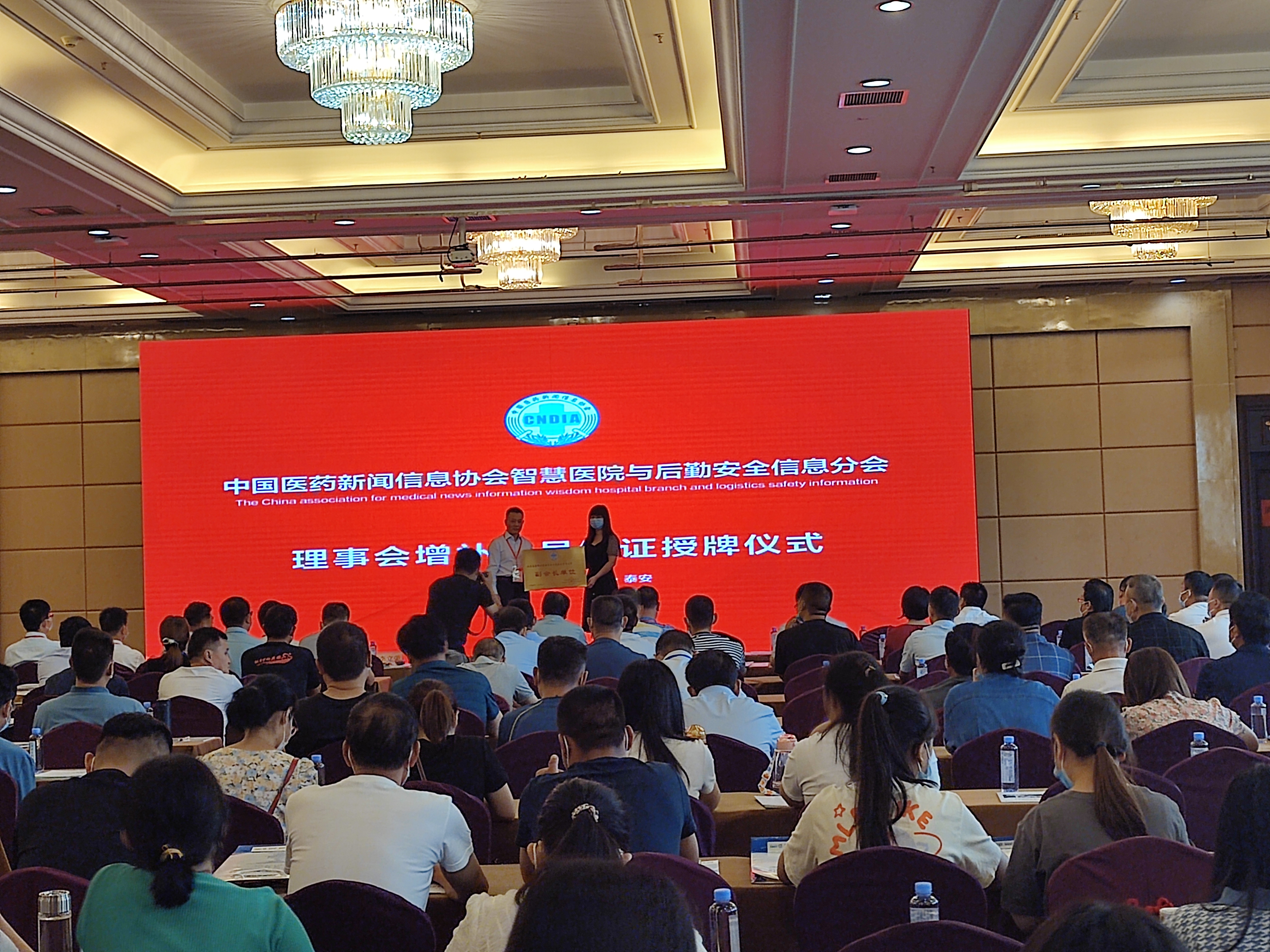 我司總經(jīng)理和區(qū)域總監(jiān)等人出席了此次大會,祝賀我司成為中國醫(yī)藥新聞信息協(xié)會智慧醫(yī)院與后勤安全信息分會副會長單位,徐建高董事長成為協(xié)會副會長!