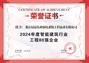 熱烈祝賀我司榮獲2024年度智能建筑行業(yè)工程80強企業(yè)